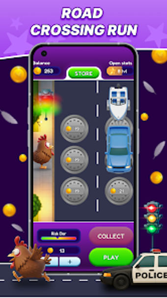 Chicken Crossing: Mystery Path es un juego de simulación disponible para Android que pone a prueba tu suerte y habilidad para la toma de decisiones. En este juego, los jugadores deben guiar a una gallina a través de un camino lleno de trampas y bonificaciones. Cada fila del camino presenta tres opciones de trampillas: una es segura, otra es un trampa y la tercera ofrece un multiplicador de puntos. Los jugadores deben elegir con cuidado para avanzar y acumular multiplicadores, mientras evitan caer en la trampa que podría acabar con su partida.